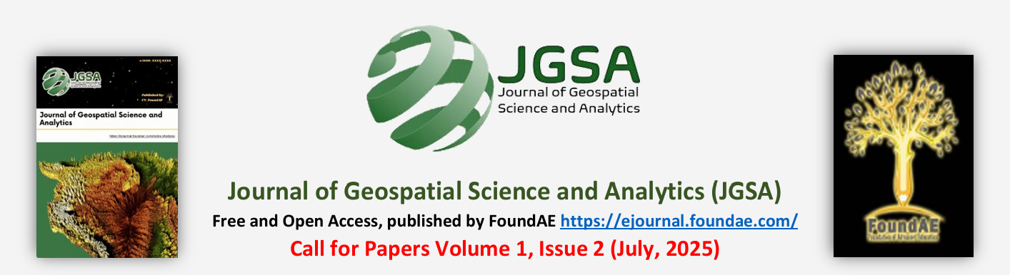 Journal of Geospatial Science and Analytics (JGSA) is a journal that combines data science with geographic data (spatial data) to identify, analyze, and visualize patterns or phenomena that occur on the earth's surface. In this journal, data that has location information (geographic coordinates) is used to solve various complex problems in many sectors, such as the environment, health and disease, transportation, urban planning, disaster mitigation, and others.